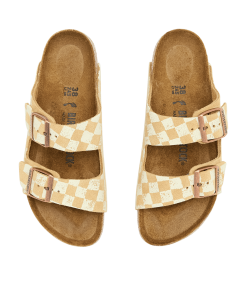 THE GREAT. Women’s Collection The Hand Stamped Birkenstock Arizona. | Latte With Cream Check