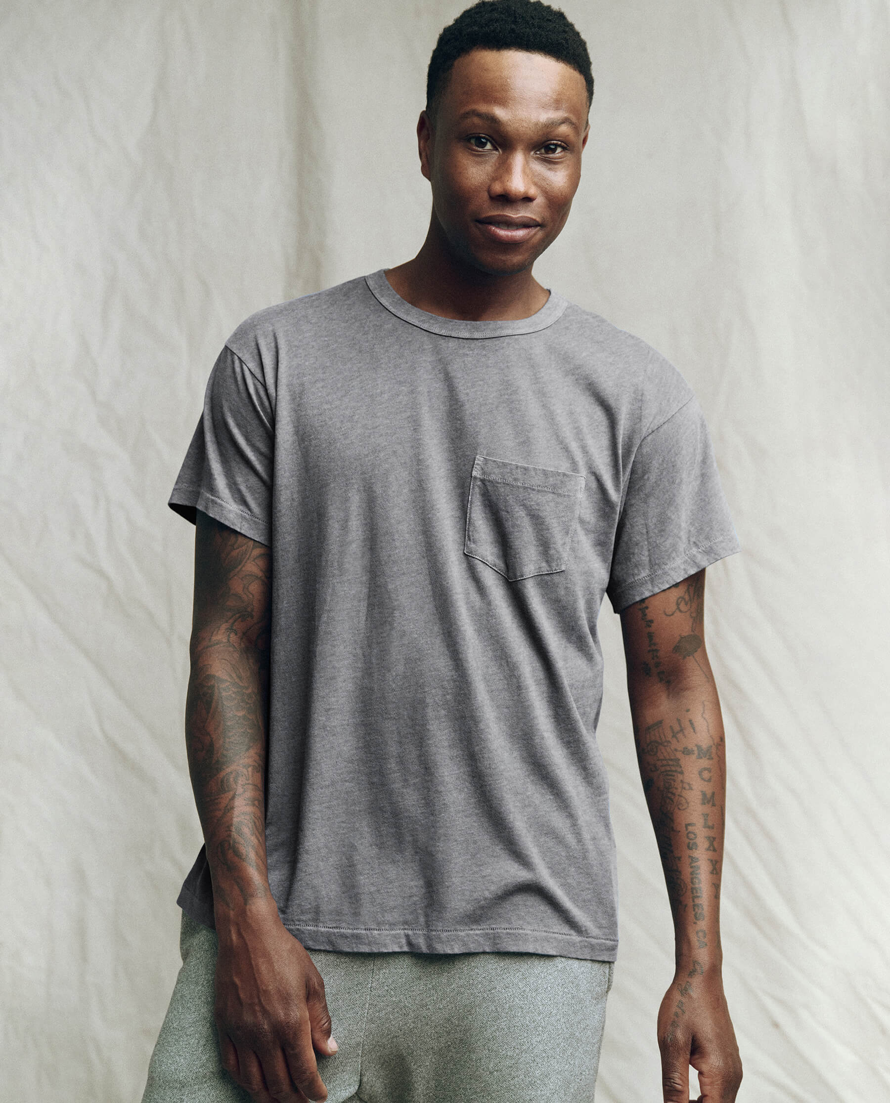 The Men’s Pocket Tee. is the latest fit in your lineup of essentials. This supersoft, washed-and-worn basic fits generously through the body with a pocket detail that naturally torques like your favorite vintage tee. Handcrafted locally in L.A., this tee is designed to get (even) more character with age and wear.