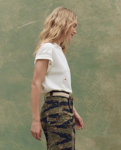 Inspired by one of our most cherished vintage tees, this is bound to become your favorite, too. Cut generously through the body, this tee has flattering updates like angled sleeves and a not-too-long length that hits just right. Made locally in Los Angeles, with a special embroidered floating daisy technique, our process ensures beauty and uniqueness—no two pieces are alike.
