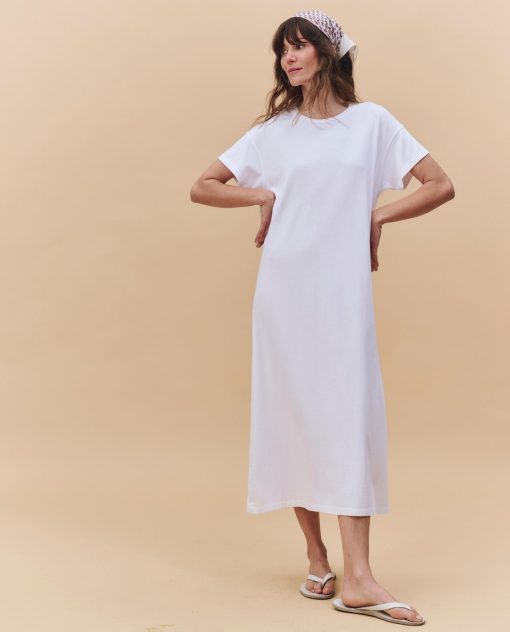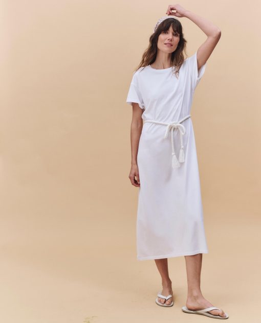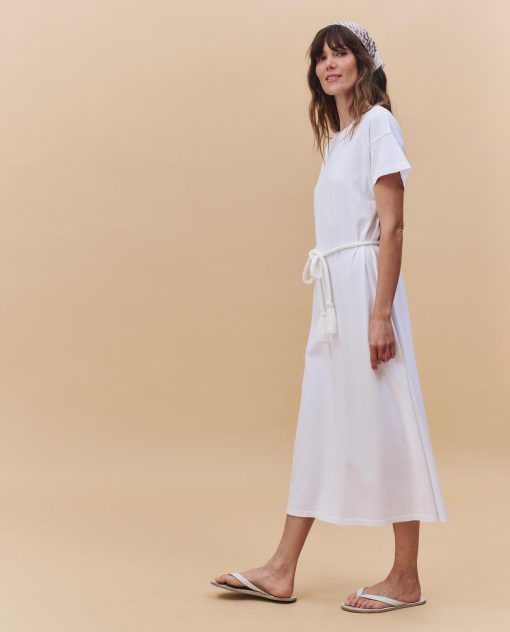 Inspired by our favorite tee—reimagined with a generous, easy fit and thoughtful updates. Angled sleeves lend a flattering shape, while the calf-grazing length adds just the right amount of polish. Made from our signature heavyweight jersey, it comes with a cotton rope belt for optional shape. Clean lines, no distressing, all ease. Made in Los Angeles.