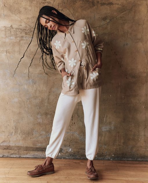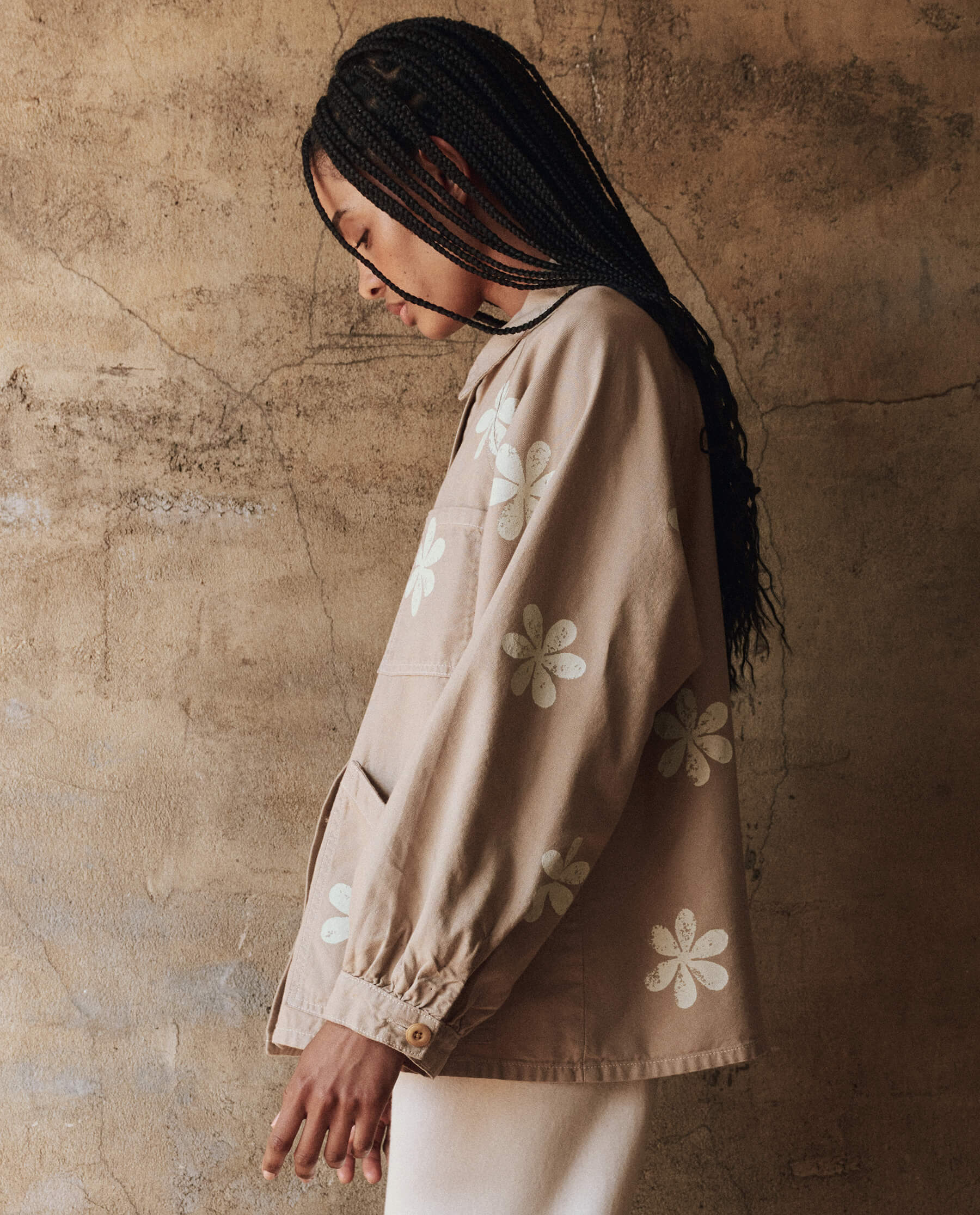 A novelty, hand-stamped touch on one of our favorite outerwear pieces. The Commodore Jacket is defined by oversized proportions and voluminous sleeves. This vintage-inspired military staple has deep front pockets and looks GREAT paired with everything from dresses to jeans and tee.