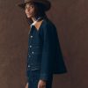Inspired by heritage-style barn jackets, this reproduction has been reinterpreted with more interesting proportions. It features a cropped length that is longer at the back, creating a charming swing shape. The jacket is made of a structured rinse denim with a corduroy collar that adds authentic detailing. It also includes a snap-front closure with a hidden front zipper, along with traditionally pleated, three-dimensional pockets and snaps at the flap closure.