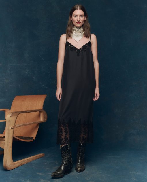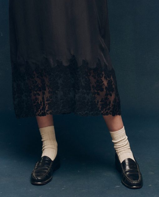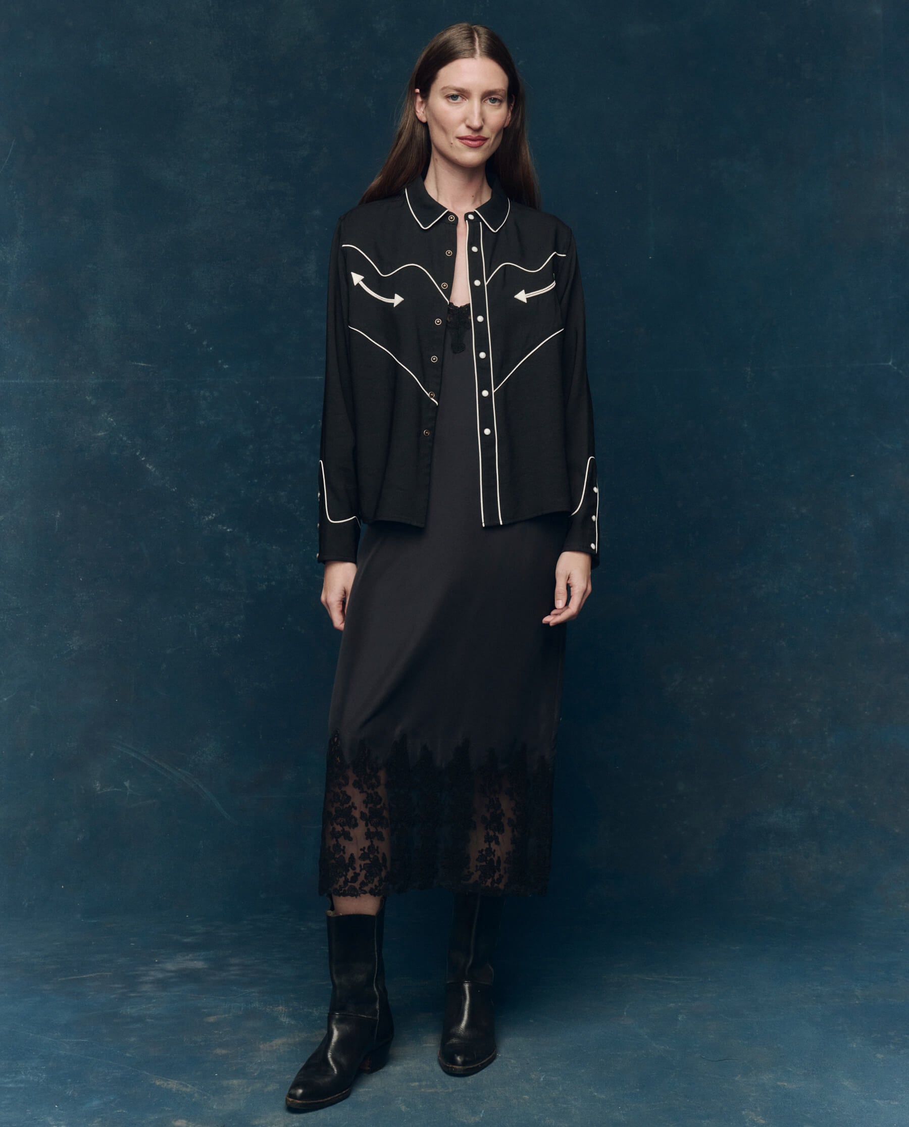 Inspired by a 1920s pajama set, The Legacy Dress features embroidered mesh lace at the v-neckline and hem. With adjustable delicate shoulder straps, it offers ultimate ease and comfort. Hitting at mid-calf, it's perfect for layering under sweaters and coats for a timeless fall look. We love pairing with statement boots.