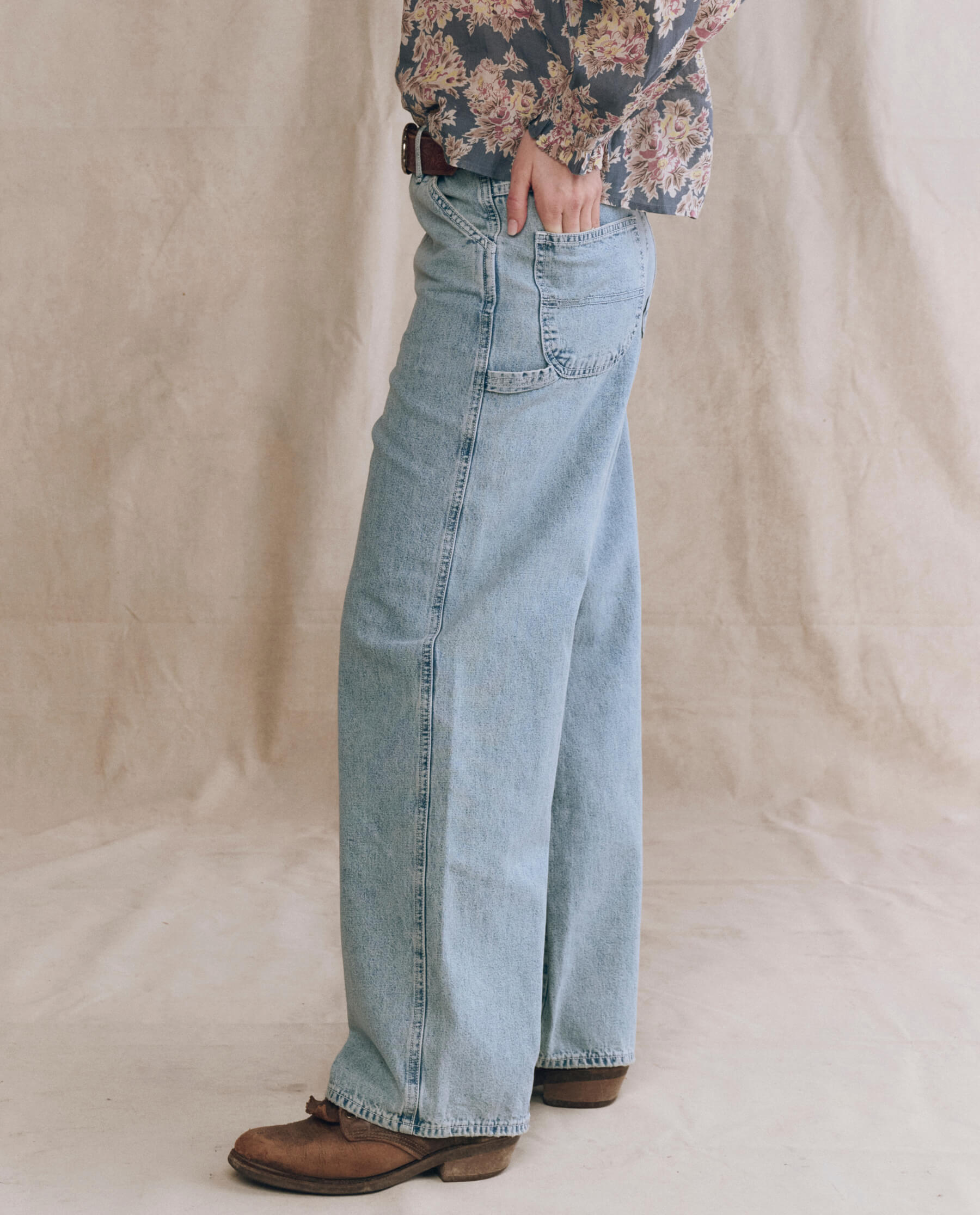 Rooted in classic workwear, The Mill Jean combines a slouchy mid-rise fit with all the authentic carpenter details you love—slanted front pockets, rounded back pockets, a side tool pocket, and double needle stitching for added durability. Finished with a metal snap waistband and zip fly closure, this jean is made in LA from lightweight cotton-hemp denim with a light vintage-inspired wash. The long inseam offers that relaxed, slightly oversized look, making these jeans perfect for every day.
