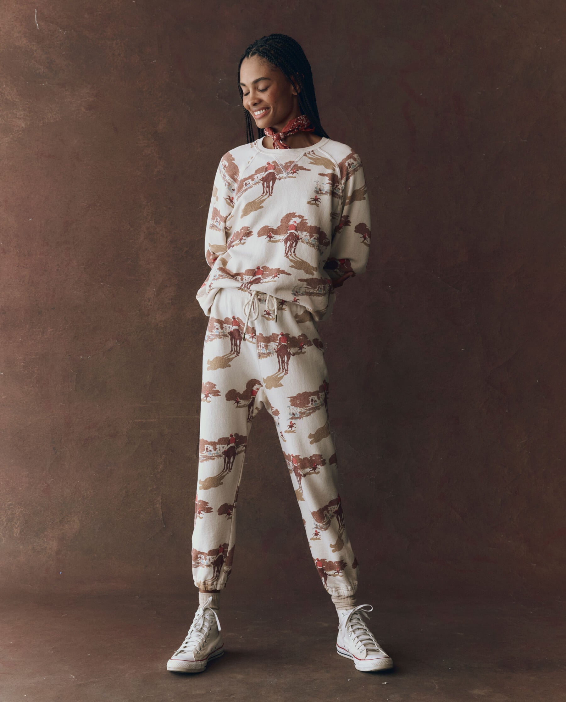 The Slouch Sweatshirt is cut with extra room through the body and fuller sleeves for a soft, slouchy fit. This version features the Riding Horses print in a washed, vintage-inspired application. Made locally in Los Angeles, every piece is one-of-a-kind.