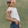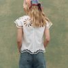 The Super Bloom Eyelet Top draws from Victorian handkerchiefs and antique linens, with floral eyelet cutouts placed thoughtfully at the neckline and sleeve caps. This cap-sleeve shell has a boxy silhouette that’s slim through the body but with room to move. Delicate embroidery edges the neckline, sleeve openings, and hem, adding a quiet intricacy throughout. Finished with a keyhole back closure, secured by a shirting button and fine loop. Crafted from mid-weight cotton shirting that holds its structure while softening over time.