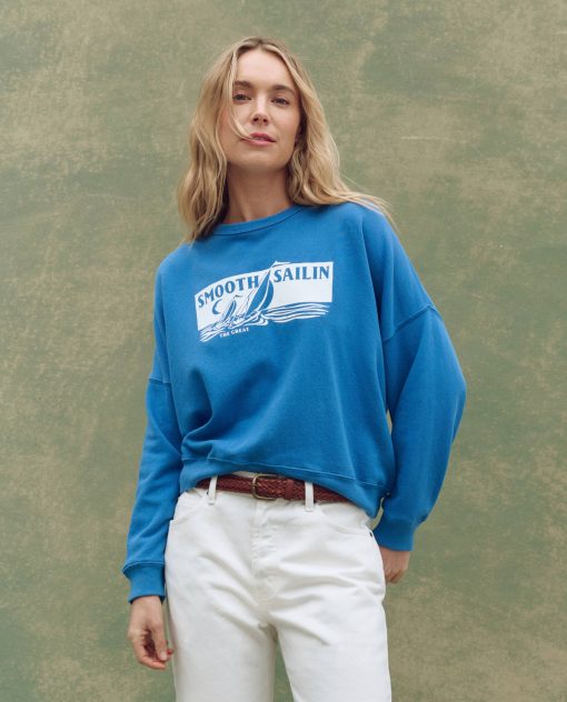 Reminiscent of the well-worn vintage sweatshirts we’ve collected for decades, it is updated this season with a vintage-inspired seascape graphic. Cut in washed terry fabric, the sweatshirt features a perfectly faded wash and a signature half-moon detail on the back neck, with the graphic printed as to age and wear beautifully and authentically over time.Handcrafted locally in Los Angeles, our process ensures beauty and uniqueness so that no two pieces are alike.