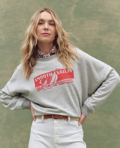 THE GREAT. Women’s Collection The Teammate Sweatshirt. Graphic | Soft Heather Grey With Smooth Sailin Graphic
