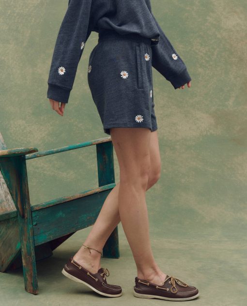 The Victory Short is the laid-back companion to our Victory Sweatpant — reimagined with a floral twist. Designed with a wide, self-fabric waistband and stitched-through encased elastic, it offers a subtle nod to vintage athletic wear. The silhouette is clean with no side seams, while wide welt pockets add easy functionality. Cut from a washed tri-blend terry with a vintage-inspired heathered finish, each pair is made in Los Angeles and finished with our signature floating daisy embroidery — a technique that makes every piece one-of-a-kind.