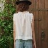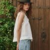 Inspired by Victorian romance, The Vignette Top is a delicate tank with a scooped neckline and beautiful, cherished details. Cotton mesh lace trims finish the neckline and armholes, while intricate faggoting trim is thoughtfully inserted in the seams for a touch of craftsmanship. The front placket features delicate buttons, and the shirred neckline adds just the right amount of flounce. A loose hemline with a wide turned-back finish completes the look, creating a soft, effortless silhouette.