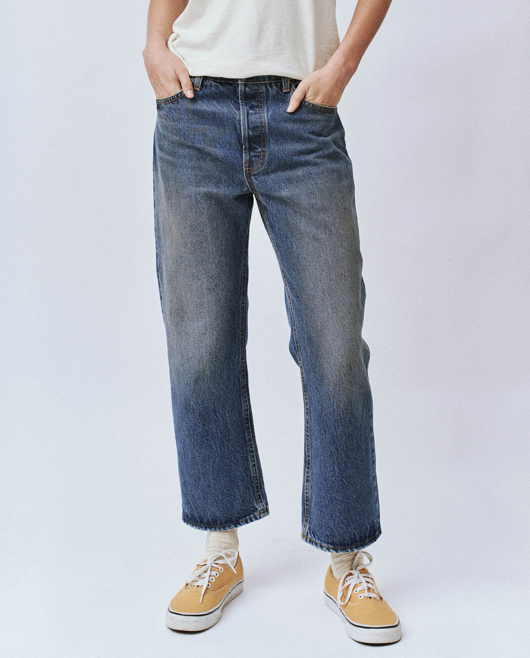 The Wayne Jean. is our favorite Made-in-LA slouchy denim body. Inspired by—and named for—Emily’s father, who has been a pillar of the brand’s nostalgic roots, this is a beloved fit that gets better with age…just like its namesake. This jean fits easy through the leg, is cropped to the perfect length with a clean hem, and is washed and worn to get the hand feel we love. Wear The Wayne Jean. true to size at the natural waist or size up to wear them oversized and slung low, like borrowing his favorite pair. Part of our collectors capsule, this pair is cut from a heavy weight rigid denim made of 100% cotton, washed in a classic shade of indigo and worn to perfection.