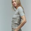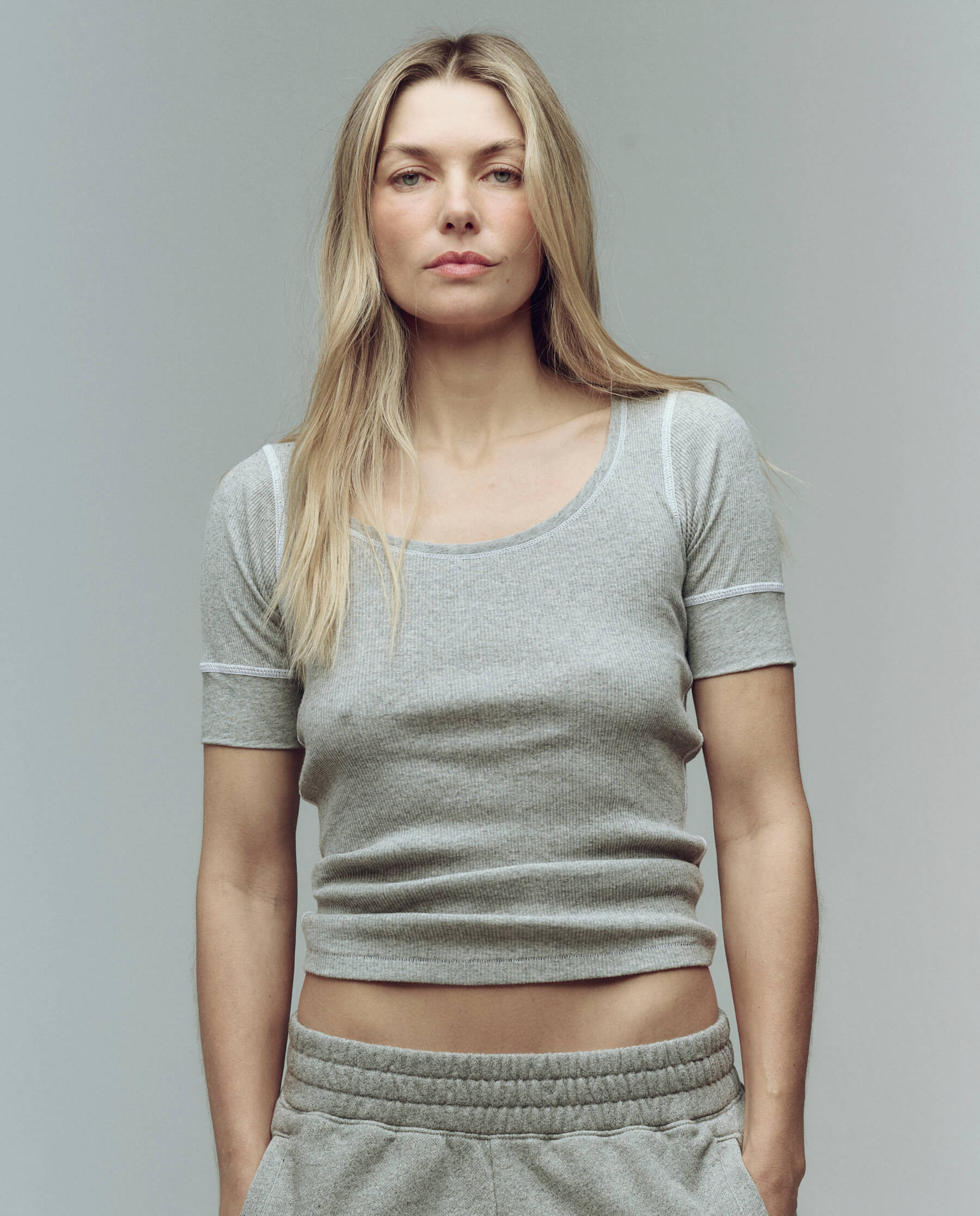 The Baby Rib Ballet Tee is a fresh take on vintage 1930s cotton undershirts, reimagined with a feminine edge. It features a scooped neckline with delicate binding, set-in short sleeves, and a wide, fine rib that adds structure and softness. Made from lightweight baby rib with a close-to-body fit and just the right amount of stretch, it’s as comfortable as it is timeless. Handcrafted in Los Angeles, ensuring no two pieces are exactly alike.