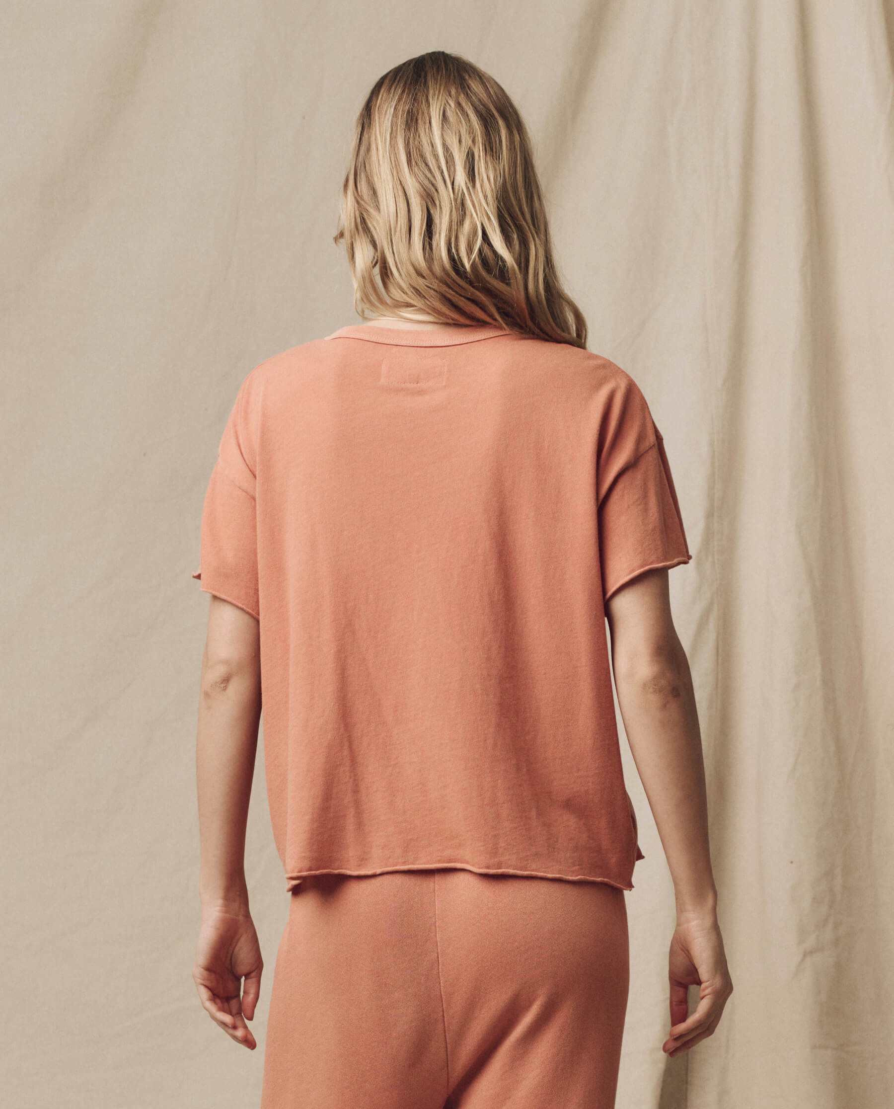 Cut cropped and boxy this top is made from super soft cotton with a lived-in wash. This tee looks great with a high-rise jean, feminine skirts, or layered under a lightweight jacket. Handcrafted locally in Los Angeles, our process ensures beauty and uniqueness—no two pieces are alike.