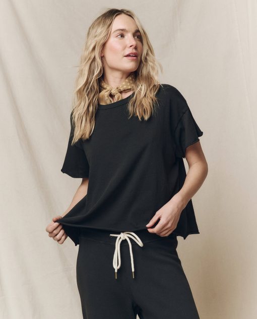 Cut cropped and boxy this top is made from super soft cotton with a lived-in wash. This tee looks great with a high-rise jean, feminine skirts, or layered under a lightweight jacket. Handcrafted locally in Los Angeles, our process ensures beauty and uniqueness—no two pieces are alike.