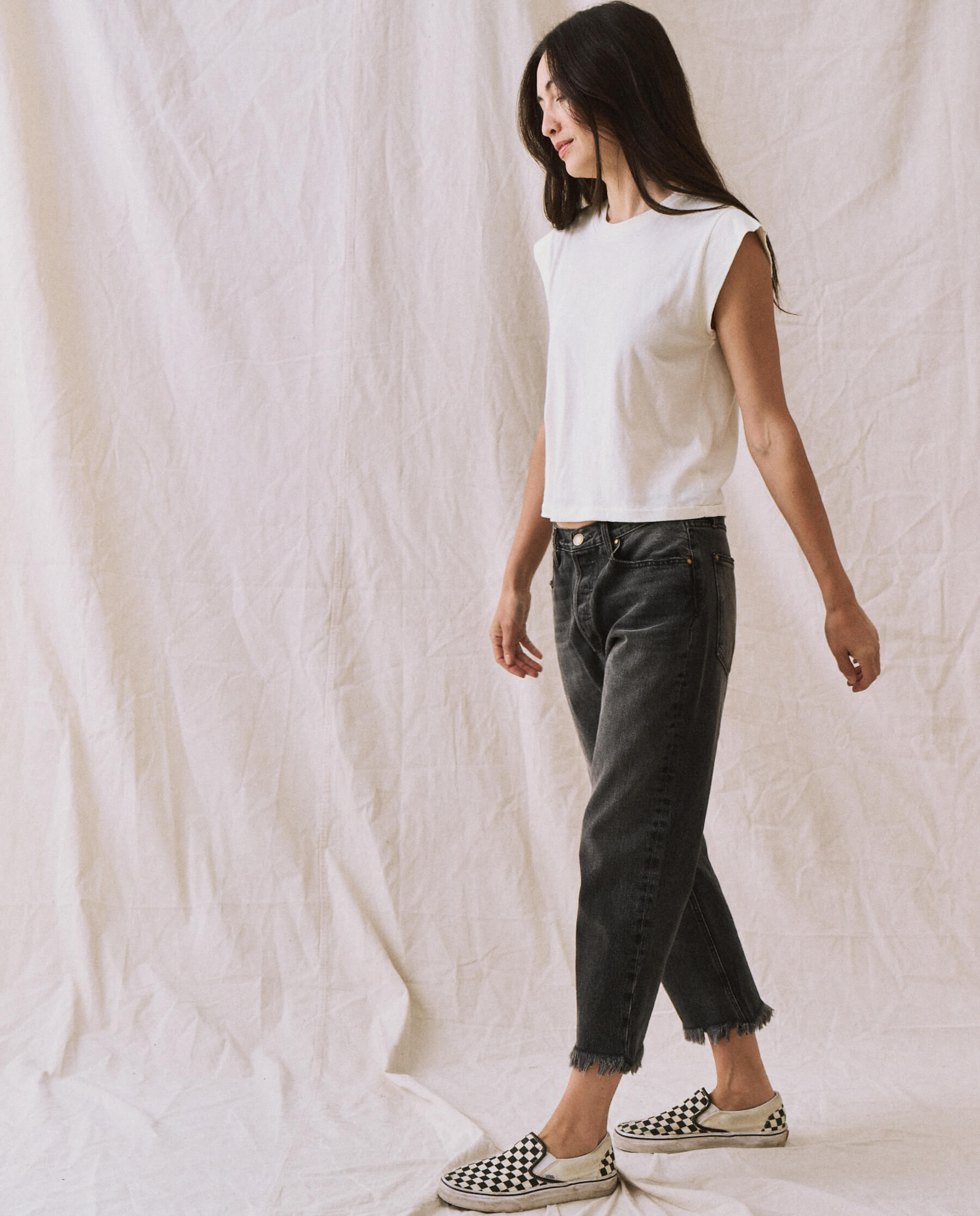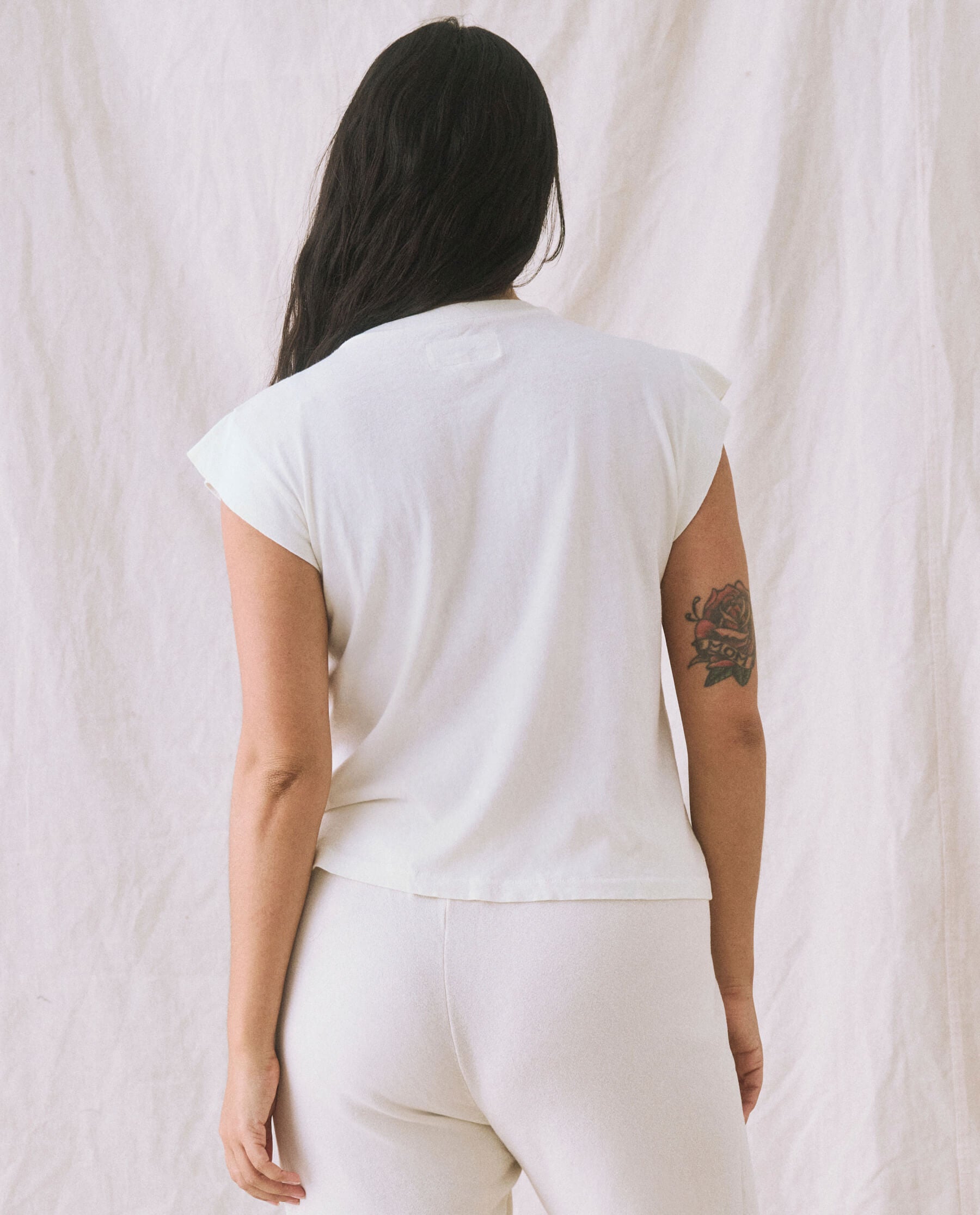 The Peak Shoulder Tee is an essential of core collectibles—a reimagining of the classic crewneck fit with updated proportions and shortened pitched sleeves. Cut to flatter, we especially love this new tee tucked into high-waisted denim and billowing skirts so the sleeves still steal the show. Handcrafted locally in Los Angeles, our process ensures beauty and uniqueness—no two pieces are alike.