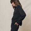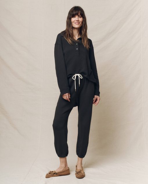 This boxy, straight-fitting top features a clean turnback hem, slightly dropped shoulders, and straight sleeves with a self-cuff for a put-together, cozy feel. A classic placket with natural shirting buttons and a self polo collar adds timeless detail. Pair with The Victory Sweatpant for an effortless look. Our knits are crafted here in L.A., ensuring beauty and uniqueness in that no two pieces are alike.