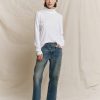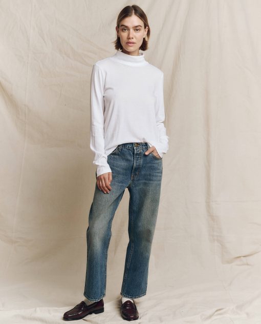 is cut from our classic jersey fabric, perfect for both layering or wearing on its own. The Turtleneck fits straight yet easy through the body and sleeves and features a rolled turtleneck collar. Size up for a slouchier, slightly oversized look or size down for a slimmer fit.