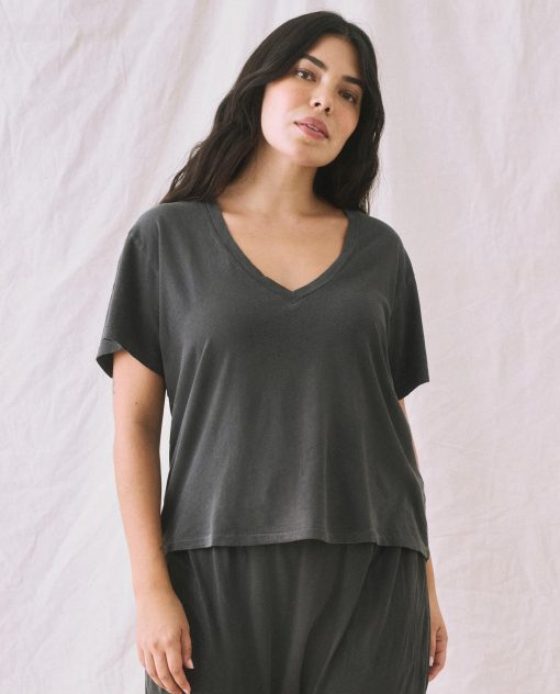 We merged our favorite design details to build the perfect tee. The V Neck. is inspired by our favorite V neck vintage tees that we have collected to make this feel slouchy yet charming with the best boxy fit, not-too-long length, deep plunging neckline, and the most flattering pitched sleeve shape. Handcrafted locally in Los Angeles, our process ensures beauty and uniqueness—no two pieces are alike.