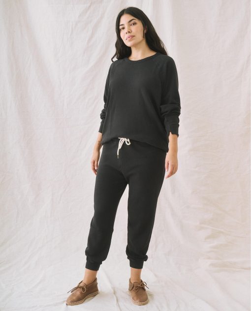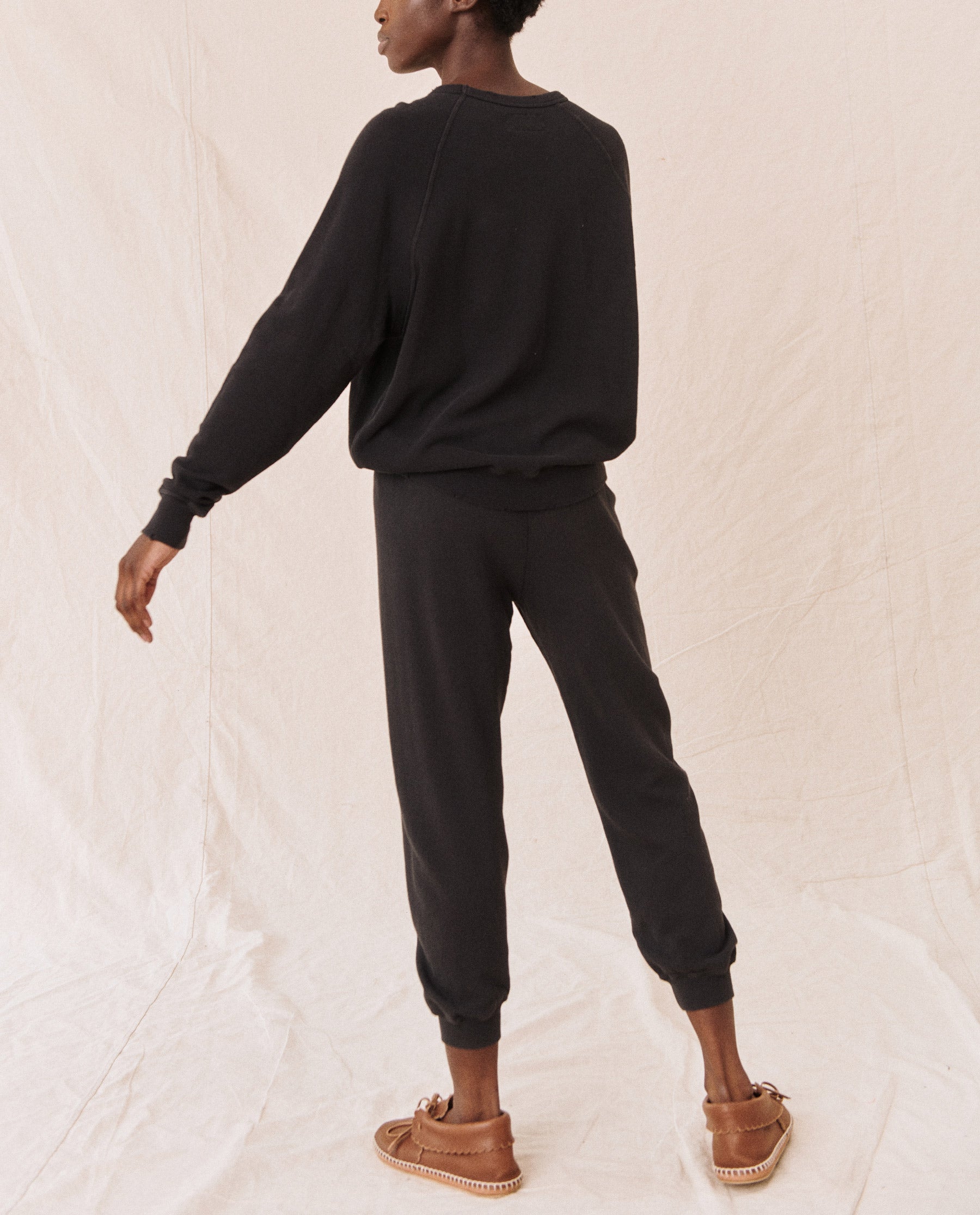 This worn-in sweatpant is the perfected version of a vintage gym pant. Its drawstring waistband and ribbed cuffs make for a perfectly relaxed look. Our knits are crafted here in Los Angeles, ensuring authenticity, beauty and uniqueness in that no two pieces are alike.