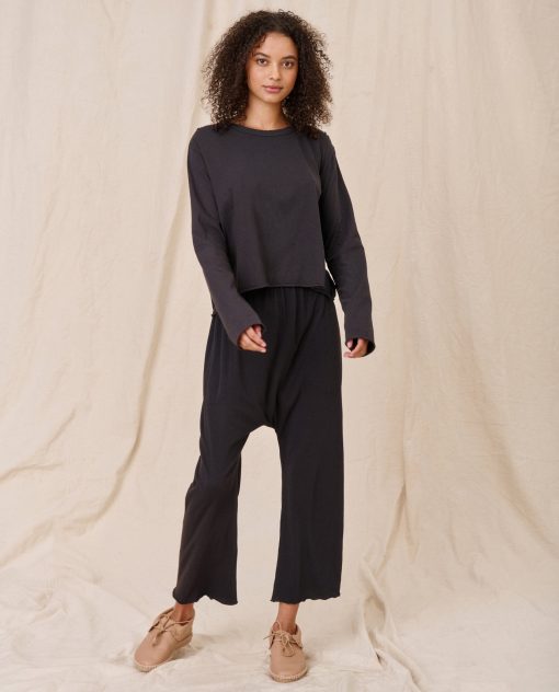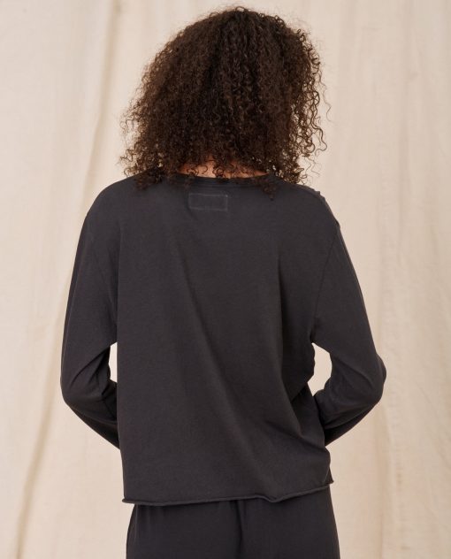Women’s Tees & Sweats The Long Sleeve Crop Tee. – Almost Black – The Great. | Almost Black