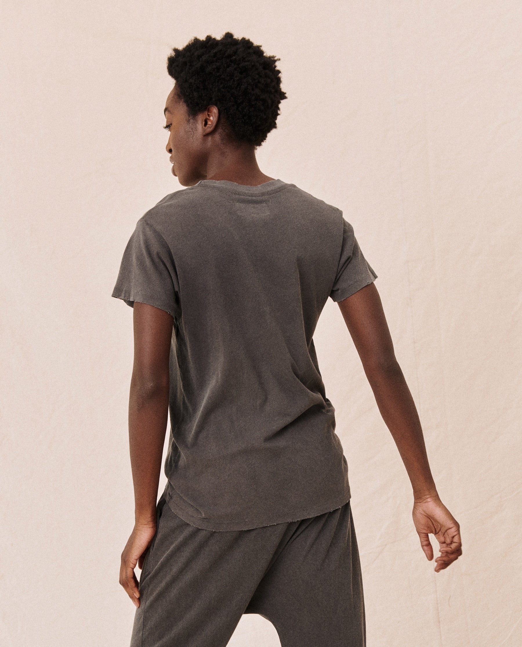 This perfect tee is a bit more narrow and a touch longer than our classic boxy crew. It is straight through the body and has all the softness and detailing of a timeless vintage tee. Handcrafted locally in Los Angeles, our process ensures beauty and uniqueness—no two pieces are alike.
